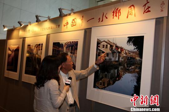 于现场和不远处展厅,展出了彭大利、许捷芳等数位台湾知名摄影家拍摄的约40幅周庄精品照片。彭大利对记者表示,周庄作为“中国第一水乡”,其最大特色是“古典”,居民和景区相互配合,水道得到精心维护,没有污染和任何漂浮物,相信会有越多越多台湾民众前往周庄游览。