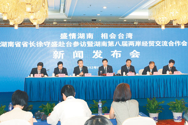 “盛情湖南,相会台湾”。省委副书记、省长徐守盛将于6月11日至17日率团赴台湾参访考察,并出席湖南第八届两岸经贸交流合作会等系列活动。5月21日下午,徐守盛出席新闻发布会,并接受37家境内外媒体采访,畅谈湘台交流合作。
