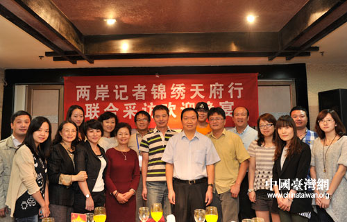 中国台湾网9月20日成都消息 19日下午,由四川省台办主办的2012海峡两岸记者“锦绣天府行——品味川西风情”联合采访活动在成都正式启动。来自两岸的包括中国台湾网、中新社、人民日报、中央电视台、中央人民广播电台、人民政协报、两岸关系杂志社、海峡之声广播电台、厦门卫视,及台湾中国时报、联合报、旺报、中国电视、TVBS电视台等17家媒体、30余名记者参加活动。