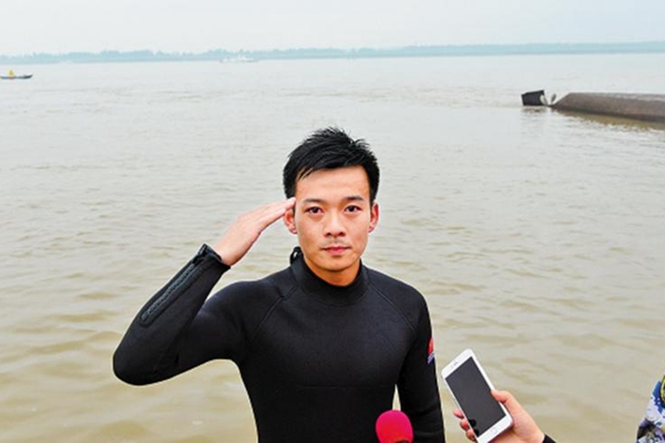 我能被大家认识,源于2015年6月参与“东方之星”号客轮翻沉事件救援行动。在救援中,我和战友们与时间、与生命赛跑,坚持战斗在救援一线,接续搜救,昼夜奋战,潜水分队共下潜58人次,潜水38.5小时,人均日睡眠时间不足2小时。参加救援的官兵有一个共同信念,那就是:“决不灰心,决不放弃!”在危难面前,军人就是老百姓的依靠,军人的字典里只有进,没有退,这就是军人的使命与担当。而在监利的那些天,我和战友每天都被感动着,感受到了人民群众对我们的真挚感情,感受到深深的军民鱼水情。很多战友都说,最自豪的是“出水后看到老百姓竖起的大拇指”。