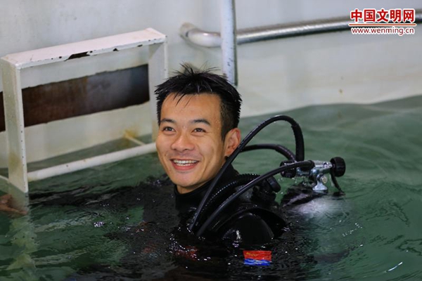 我是一个“幸运儿”,能够成为新时代人民海军中的一员。2008年我刚入伍时,是彻头彻尾不会游泳的“旱鸭子”,却偏偏被挑选成为潜水兵。那时我憋着一股劲,别人游1个小时,我就游2个小时甚至3个小时,利用休息时间加班加点地练。平时训练的日积月累,重大任务的千锤百炼,凭借着不懈的努力和付出,我具备了扎实的潜水技能和丰富的潜水经验,成长为一名合格的潜水员。