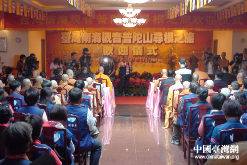 台湾南海观音普陀山寻根之旅欢迎仪式在浙江普济禅寺举行。(图片来源:舟山市台办)