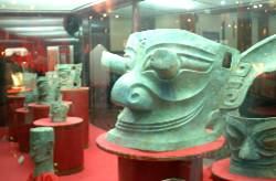 世界上一次性出土最多的青铜人头像,面具。达50多件。