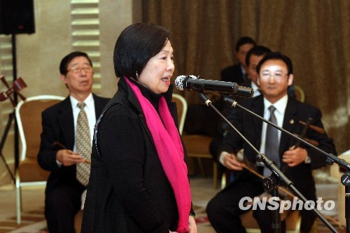11月21日,出席海峡两岸京剧艺术论坛的台湾海基会前董事长辜振甫遗孀、台湾中华妇联总会主任委员辜严倬云,在天津举行的两岸京剧票友联谊活动中,饱含深情地讲述了自己学习京剧的过程,并现场演唱了程派代表作《锁麟囊》选段。 中新社发 郭晓帆 摄