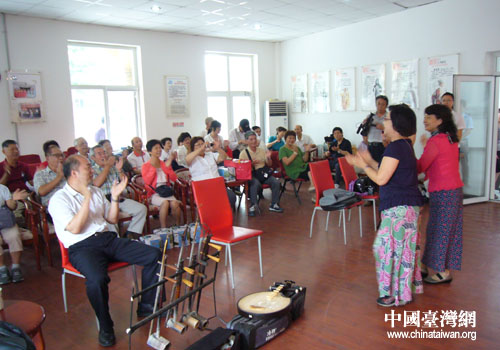 社区居民和台湾朋友进行联谊活动,并表演文艺节目。(图片来源:天津南开区台办)