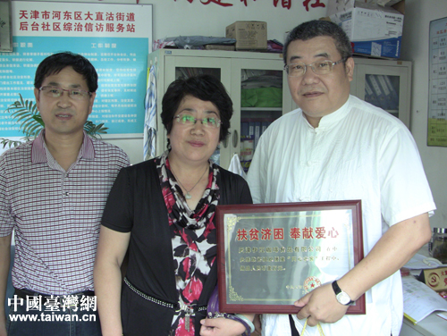 中国台湾网10月7日天津消息 日前,为帮助困难群众度过佳节,深入开展群众路线实践教育活动,在天津市台资企业协会常务副会长、上岛咖啡食品技术开发有限公司总经理、河东区政协特聘委员林金星的大力支持下,天津市河东区台办工作人员对辖区内的11户困难家庭进行走访慰问。