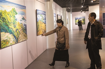 10日,由天津空港经济区社会发展局、空港经济区文化中心主办,“登峰造极2015郭少宗台湾百岳油画展”在空港文化中心综合展厅展出。据了解,此次活动共展出45件艺术家郭少宗的油画“台湾百岳”系列作品。本次展览对公众免费开放,展期为一个月,为普通百姓提供更多接近艺术和了解艺术的机会。图为市民观展。(记者 宏旭 文 周伟 摄)