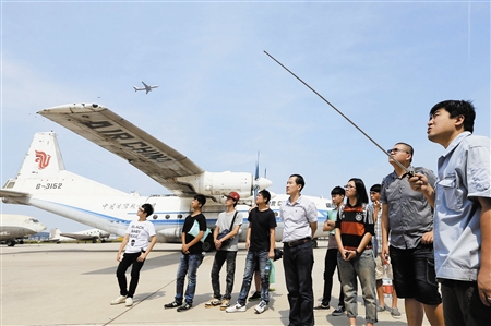 图为台湾师生在中国民航大学与不同时期的飞机“零距离接触”。 本报记者 王晓明 摄影报道