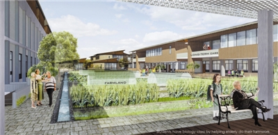 记者看到,他们设计的整个建筑非常注重绿色环保,墙体采用可回收的速生竹作为主材料,并通过建立“自足体系”节约能源。“太阳能电池板提供电能、地源热泵系统代替空调实现能源自足;安装一个集水罐,利用收集到的雨水灌溉花园及周边农田实现水源自足;校园内的农田种植四季时蔬实现食物自足。既能让老人们享受‘自足’带来的乐趣,也能让小学生参与实践、增强能力。”杨慧表示。