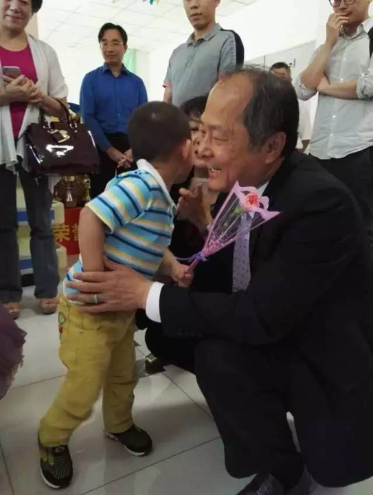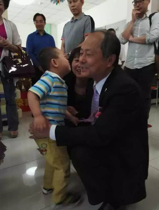 当几名小朋友跳了一段舞蹈欢迎来自台湾的爷爷奶奶、叔叔阿姨后,天真的孩子们主动前来寻求拥抱。爷爷奶奶、叔叔阿姨们非常高兴地抱起孩子,忍不住和孩子们脸贴着脸,像一家人一样亲昵地逗乐起来。看着可爱的孩子们,几位爱心爆棚的人士现场就询问起如何收养的问题。