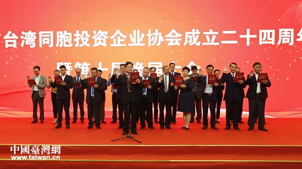 天津市台湾同胞投资企业协会召开协会成立24周年暨第十一届会员大会现场。(图片来源:天津市台办)