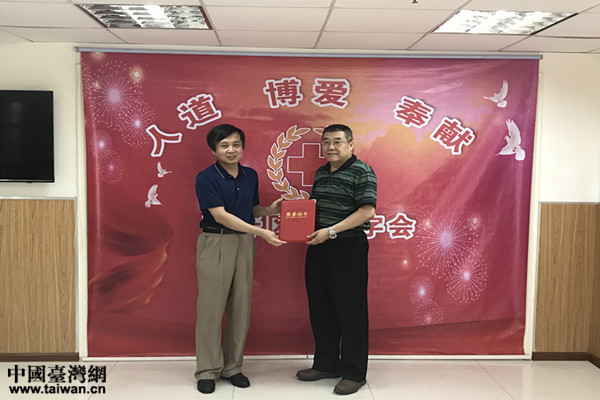 中国台湾网7月27日南开讯 近日,天津南开区红十字会常务副会长王建华向南开区台商林金星先生颁发了弘扬“人道、博爱、奉献”红十字精神的荣誉证书。