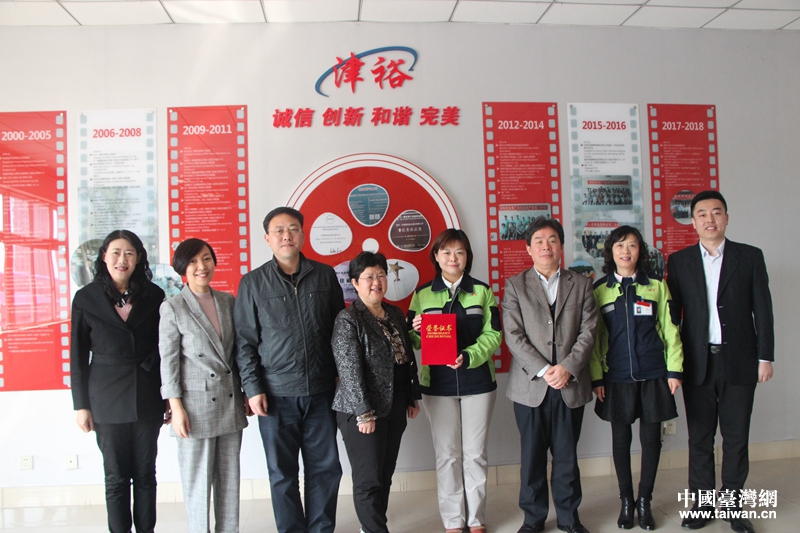 中国台湾网5月6日天津讯 近日,天津市委台办副主任原清,市妇联宣传部部长杨健,河北区委常委、区委统战部部长周鸿滨,以及市委台办宣传调研处、河北区委统战部、河北区委宣传部、河北区妇联等市区部门单位的相关负责人与天津津裕电业股份有限公司的部分员工欢聚一堂,为公司董事会董事、总经理助理林佳桦举办了一场别开生面的“生日聚会”——市级三八红旗手颁奖仪式。