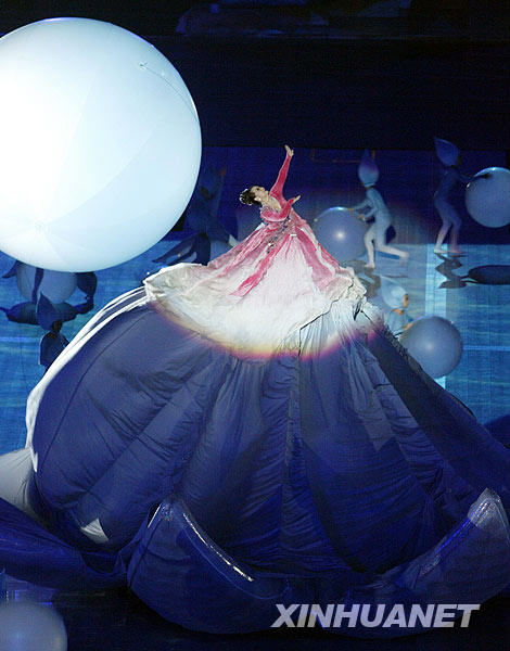 7月14日,演员在高雄世运会开幕式总彩排中表演。当日,第八届世界运动会开幕式总彩排在台湾高雄世运主场馆举行。2009第八届世界运动会将于7月16日至26日在高雄举行。新华社发(吴景腾 摄)
