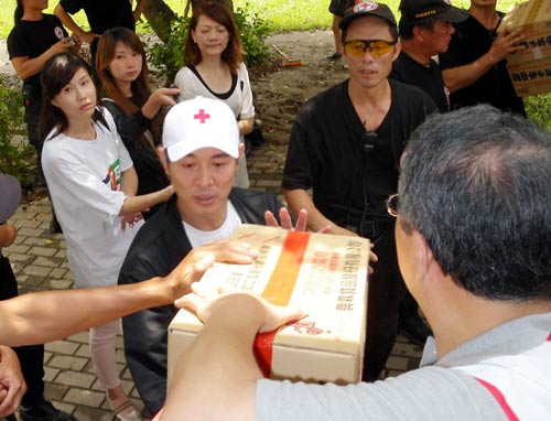 据“中央社”报道,李连杰上午与红十字会人员,一同到位于高雄县旗山镇旗山中学的台军前进指挥所,响应“88水灾”赈灾。中午在旗山中学用完餐后,李连杰一行人下午将把准备好的物资,送进高雄县六龟乡村落。