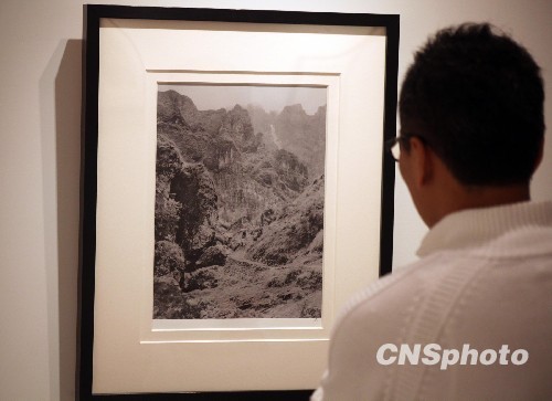 10月12日,“八八救灾义展——郎静山摄影展”在台北开幕。作为华人现代艺术史上的传奇人物,郎静山的限量艺术品此番除了开放展览外还将进行首次义卖,所得的半数将捐助给在“八八水灾”中受灾的弱势家庭儿童。此次展出分为“暗房游戏”、“清淡高雅”以及曾于2004、2005年受邀至德国慕尼克维拉斯托克美术馆与基尔美术馆展出的“当代上海中的郎静山”三个主题,让观众了解他... 中新社发 李佳佳 摄