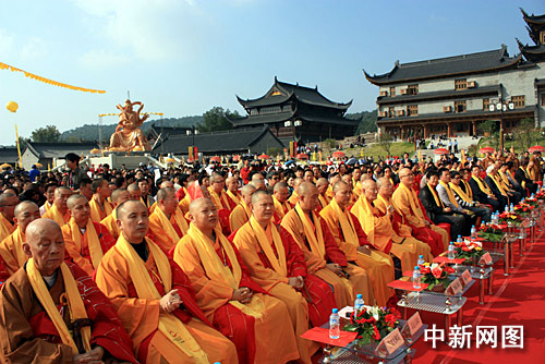 中新网宁波10月26日电(记者 张慧慧 徐小勇 何蒋勇)今天上午,2009中国(奉化)雪窦山弥勒文化节开幕式暨雪窦寺四大天王开光法会在浙江奉化隆重举行。来自包括香港、澳门及台湾在内的两岸三地政界、商界、文化界、演艺界、佛教界、旅游界及新闻界3000多名海内外著名人士云集奉化,参加此次活动。
