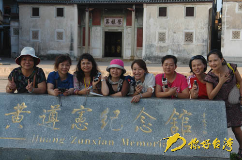 报道团(部分成员)在黄遵宪故居前合影。(你好台湾网 陈黎琴 摄)