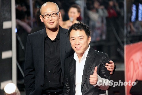 11月28日,第46届金马奖颁奖典礼在台北县举行。大陆影星黄渤、香港影星张家辉,分别在《斗牛》和《证人》中的出色表现获得最佳男主角,这是金马奖首次出现二位演员并列获最佳男主角。图为黄渤(右)出席金马奖颁奖。 中新社发 黄少华 摄