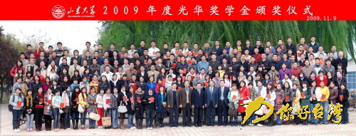 山东大学获2009年度光华奖学金学生与颁奖领导合影(你好台湾网 图)