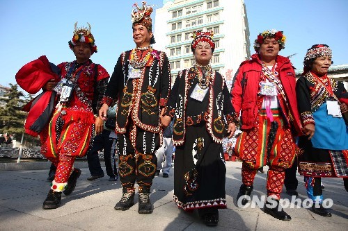 中新社北京十二月二十一日电 (记者 邢利宇) “台湾少数民族历史文化展”二十一日在北京民族文化宫隆重开幕。这是大陆首次举办比较全面、系统介绍台湾少数民族文化和历史的大型主题展览。台湾少数民族十四个族群的长老头目等同时亮相开幕式,这也是台湾少数民族代表首次成规模地来大陆参访。