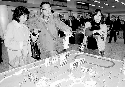 东南网-福建日报1月25日讯(刘永良) 1月21日至23日,以台北县明德高中校长黄祺枫为团长的参访团一行28人,在永定县开展教育交流活动。通过实地参观、座谈交流,双方增进了相互了解,永定一中与台北县明德高中、永定县胡文虎小学与台北县文德“国小”、永定县实验小学与台北县海山“国小”、湖坑中心小学与台北县头前“国小”分别签订了缔结友好学校意向书。图为参访团成员在永定县侨育中学参观校园规划模型。