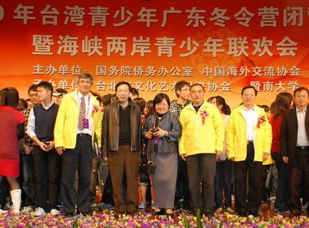 1月30日下午,由中国海外交流协会主办,台北市文化艺术促进协会、暨南大学承办的“2010年台湾青少年广东冬令营”在暨南大学礼堂闭营。闭营仪式上,营员们表演了台湾特色的文艺节目,载歌载舞,尽情联欢。中国海外交流协会文教部部长刘辉,冬令营营长、台北市文化艺术促进协会会长黄寤兰,中国海外交流协会文教部副部长李民,暨南大学校领导胡军、蒋述卓、贾益民、陆大祥、纪宗安、叶勤、周天鸿、林如鹏等出席闭营仪式。