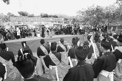 23日上午10点,福州市晋安闽台王审知研究会会长王大盛宣布大典开始,鸣放礼炮。两岸宗亲代表在主祭官王珠庆先生的带领下开始祭祀典礼(上图)。盥洗上香、献爵奠酒、行初献礼、恭读祝文、行亚献礼、行终献、饮福受胙、焚帛望瘗、辞神。整个祭祀过程展现了中华传统的祭祀礼仪。