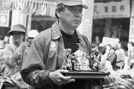 台湾信徒捧着妈祖神像巡街