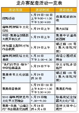 5月29日上午8点半,2010联发嘉庚杯敬贤杯海峡两岸龙舟赛将在集美龙舟池激情开赛。
