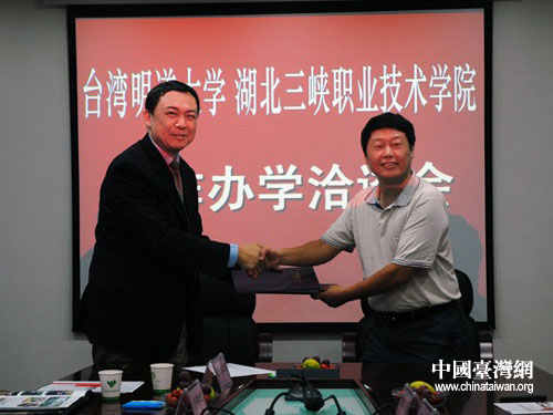 中国台湾网6月22日宜昌消息 6月18日上午,台湾明道大学校长汪大永博士一行8人在宜昌市台办副主任周智、秭归县县委书记罗平烺等陪同下来湖北三峡职业学院参观访问,并签订了合作协议。