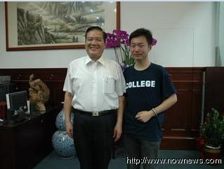 北大三年级学生刘凯约访新竹市长许明财。图片来源:台湾今日新闻网