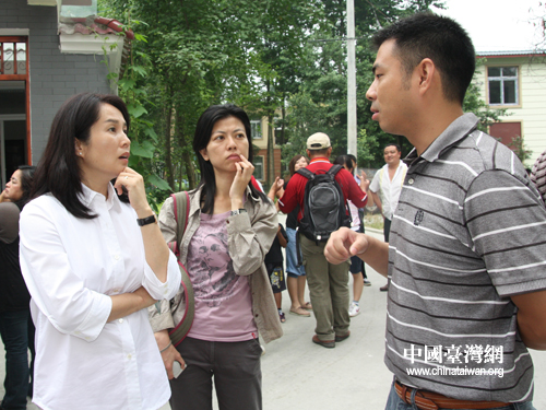在天马镇焦家大院,高金素梅详细询问灾后重建情况。(中国台湾网 宿静摄)