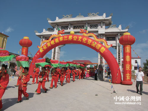 浦台两岸同胞在漳浦县赤岭乡雨霁顶三界公庙共同庆祝海峡两岸三界公民俗文化交流活动。(漳浦县台办 陈文亮 摄)