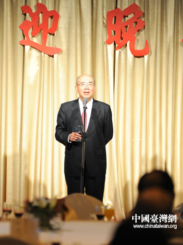 中国国民党荣誉主席吴伯雄在台北圆山大饭店会见并宴请中共湖南省委副书记梅克保一行。图为吴伯雄致辞。(湖南省台办 李兰 摄)