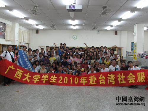 中国台湾网8月10日桂林消息 2010年桂台大学生夏令营广西站将于8月10日开营。来自台湾大学的25名大学生将分别和广西大学的30名大学生、广西柳江高中的45名师生开展署期社会实践活动。