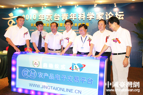 在本次论坛上,还举行了京台农产品电子交易平台开通仪式。据悉,该平台是于2009年在北京市台办、北京市科协等相关部门的支持下,由北京农业信息技术研究中心与台湾农训协会共同开办的。经过一年试运行,今天正式开通运行。