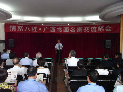 中国台湾网8月17日南宁消息 8月16日,“情系八桂——两岸文化联谊行”大型文化交流活动走进广西,这一天也恰巧正逢中华民族共同的“七夕”。两岸文化界知名人士走进邕江畔的邕江湾美术馆,进行了一场别开生面的交流笔会。