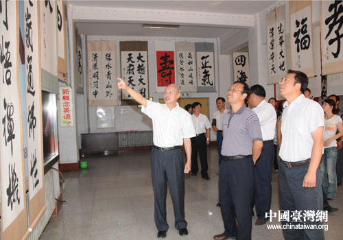 中国台湾网9月27日北票消息 日前,为庆祝建国61周年,辽宁北票市举办“寰宇杯”陈大络书法展。出自台湾著名书法大师陈大络之手的“江山一统”等书法作品充分体现出两岸同根、同源,都是中华民族炎黄子孙的情怀。