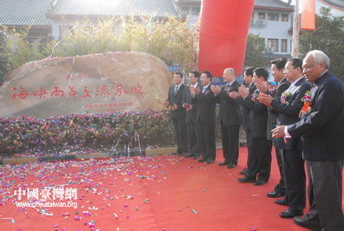 海峡两岸交流基地文化石落成揭幕(图片来源:湖北省台办 陆胜 摄)