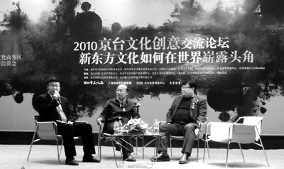 文博会期间,“京台文化创意交流论坛”于19日在北京台湾会馆召开,京台两地文创业者,就京台两地文创人才的交流、文创产业的资源整合以及品牌经营策略等,展开了深入探讨和交流。