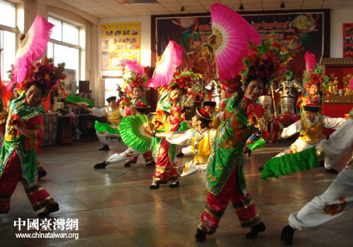 中国台湾网12月21日抚顺消息 日前,台湾中天电视台记者一行来到辽宁省抚顺市,采访抚顺八旗风满族秧歌艺术团。艺术团精彩的表演让台湾记者赞不绝口。