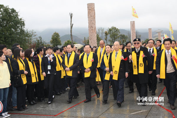 辛卯年清明海峡两岸共祭炎帝神农氏大典今日在湖南炎陵举行,图为两岸各界代表步入炎帝陵园准备祭祀。(中国台湾网 杨丽 摄)
