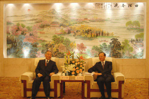 据国家旅游局网站消息,4月15日,2011中国国内旅游交易会期间,国家旅游局局长、海峡两岸旅游交流协会会长邵琪伟在西安会见了台湾观光协会会长周庆雄一行。双方就进一步加强两岸旅游交流合作,特别是加强旅游产业化合作等交换了意见。