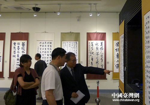 考察团在台参观书画展(图片来源:沈阳市台办)