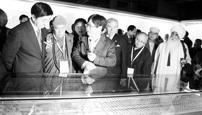 北京首都博物馆于9日起至2012年2月19日,在台湾世界宗教博物馆举办“智慧华严——北京首都博物馆佛教文物珍藏展”,展出102件国宝级珍藏精品。这是首都博物馆第一次在台展出众多精彩的皇家佛教文物,其中1/3的参展文物是出土后首次公开亮相,展品包括汉传文物45件,藏传文物57件。当晚该馆还与中华宗教文化交流协会及各界宗教团体一起,在台北举行了“心和平之夜”文艺晚会。(本报记者 王连伟摄影报道)