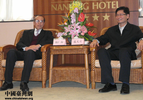 中国台湾网3月26日南宁消息 3月25日,广西壮族自治区副主席蓝天立在南宁会见由台湾民意代表杨仁福先生率领的台湾花莲县少数民族参访团一行。
