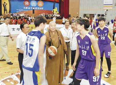 佛光杯两岸女篮赛,星云大师称从打球中学做人。图片来源:台湾《旺报》