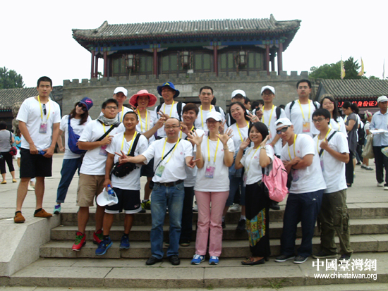 台胞青年千人夏令营成员在承德避暑山庄丽正门前合影。(中国台湾网 王新妍 摄)