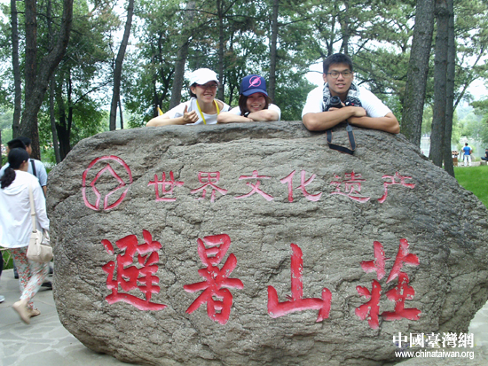 中国台湾网7月5日承德消息 “龙脉相传·青春中华全国台联2012年台胞青年千人夏令营”活动团组今日来到了著名的旅游胜地——河北承德。来自台湾和海外的200多名台胞青年和30多名北京航空航天大学的志愿者一起参观了承德避暑山庄以及有“小布达拉宫’之称的普陀宗乘之庙。在这里,两岸青年学子共赏美丽的皇家园林风景以及藏传佛教的宏伟建筑,共同感受两岸一脉相承的文化传统和历史渊源。他们一路欢歌笑语,通过交流,加深了彼此的感情,也使得台胞青年对大陆的发展有了更加深刻的体会。